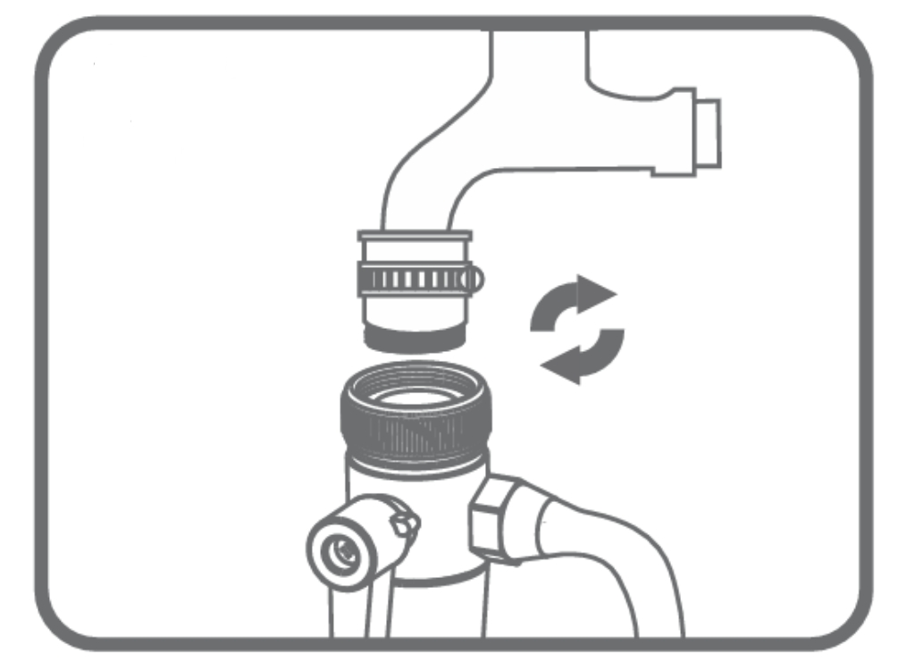 ② Sambungkan konektor keran (pastikan gasket terpasang dengan benar) ke konektor ulir luar dan kencangkan murnya.