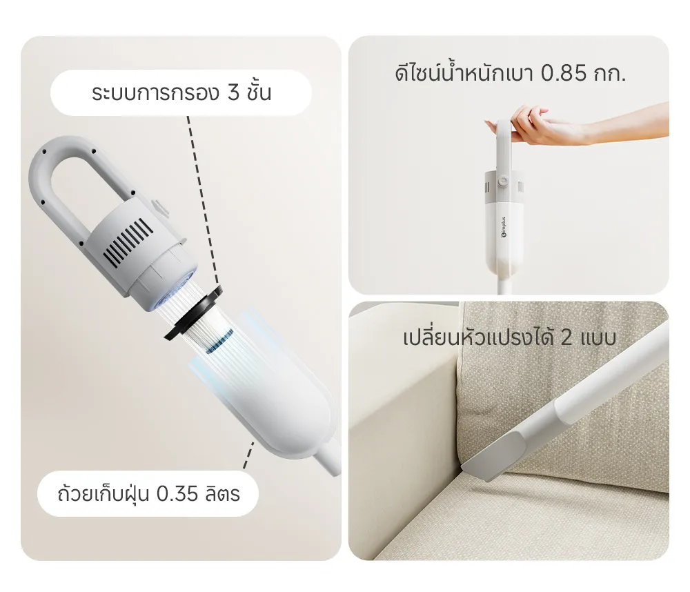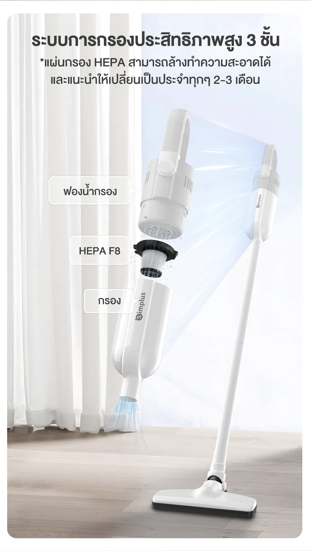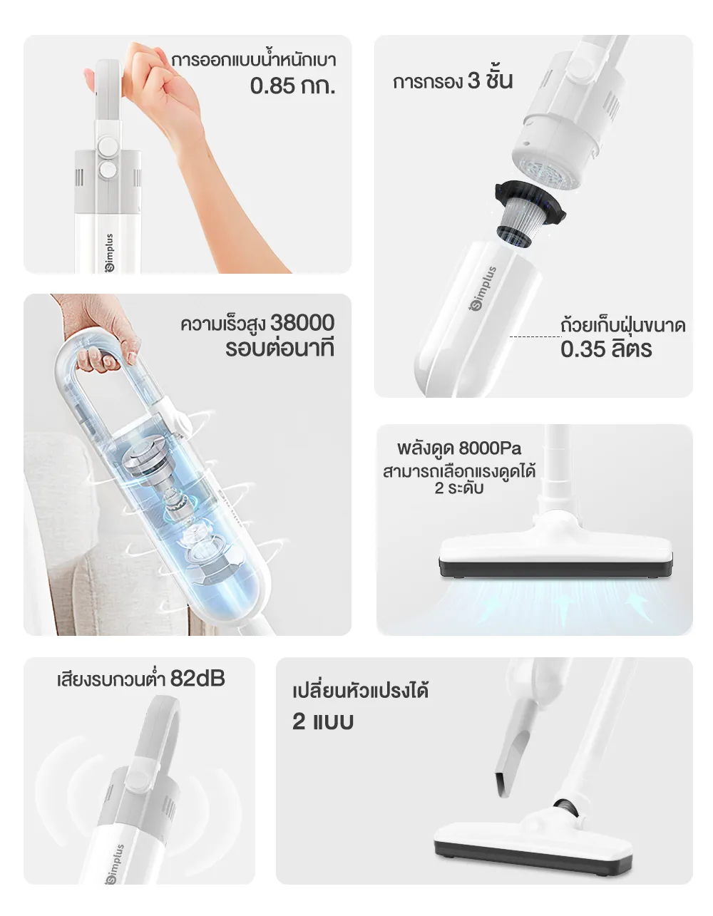 6. การออกแบบน้ำหนักเบา 0.85 กก. (ไม่รวมน้ำหนักสาย) ยกสูงเพื่อดูดฝุ่นได้ง่าย