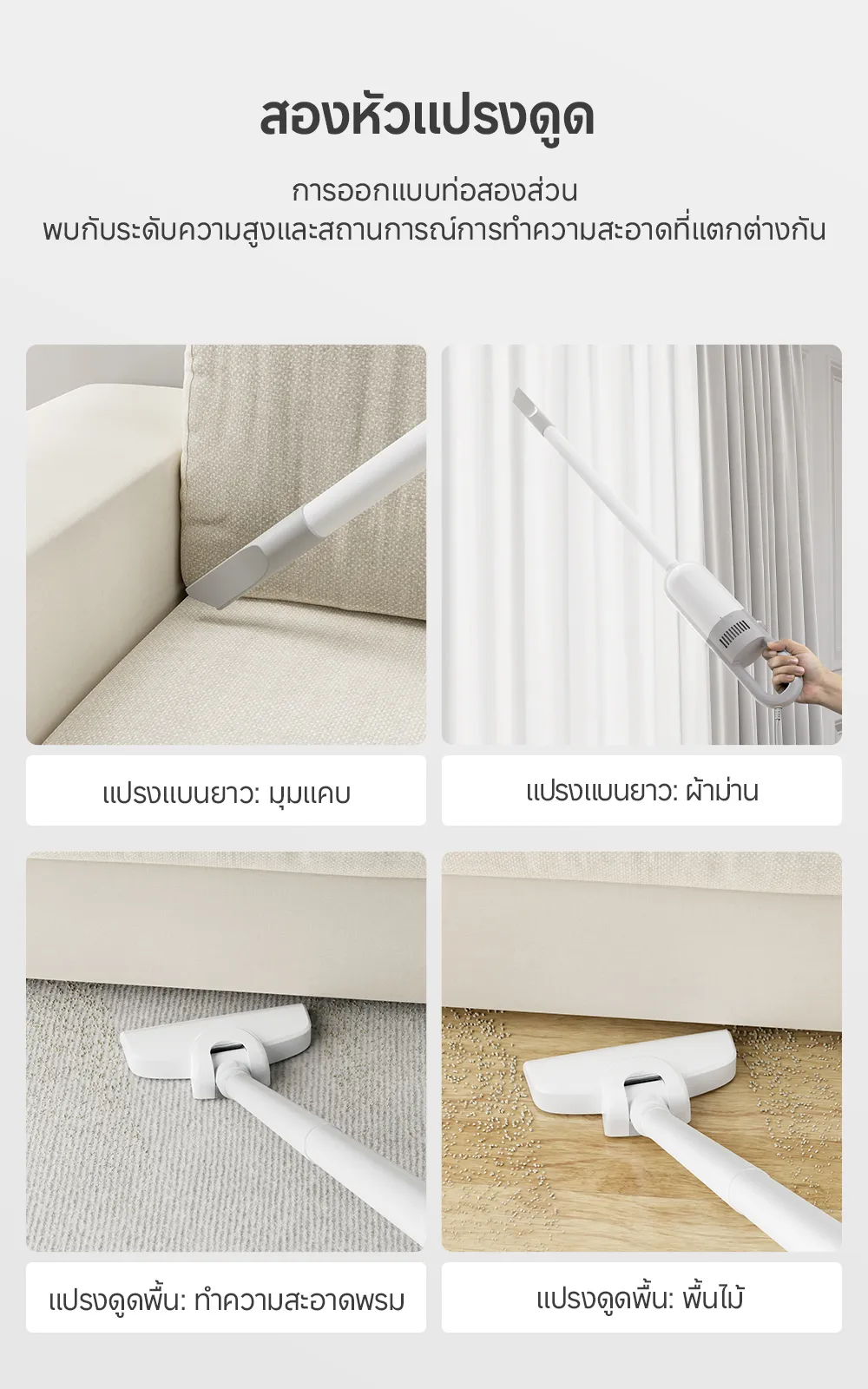 6. การเปลี่ยนหัวแปรงคู่เหมาะสำหรับ การทำความสะอาดที่แตกต่างกัน แปรงพื้น: การทำความสะอาดพื้น/พรม / แปรงแบน: ช่องว่างแคบเล็ก ;