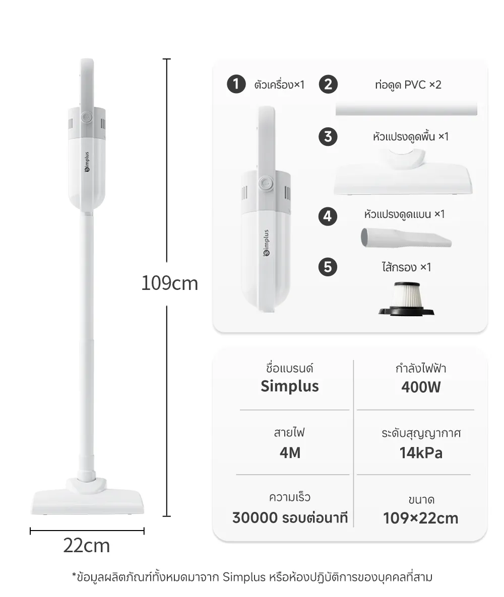 【Simplus Club】⚡️️Simplus x PP Krit⚡เครื่องดูดฝุ่น เครืองดูดฝุ่นแบบมือถือขนาดเล็ก พลังแรงดูด Wired Stick Vacuum Cleaner